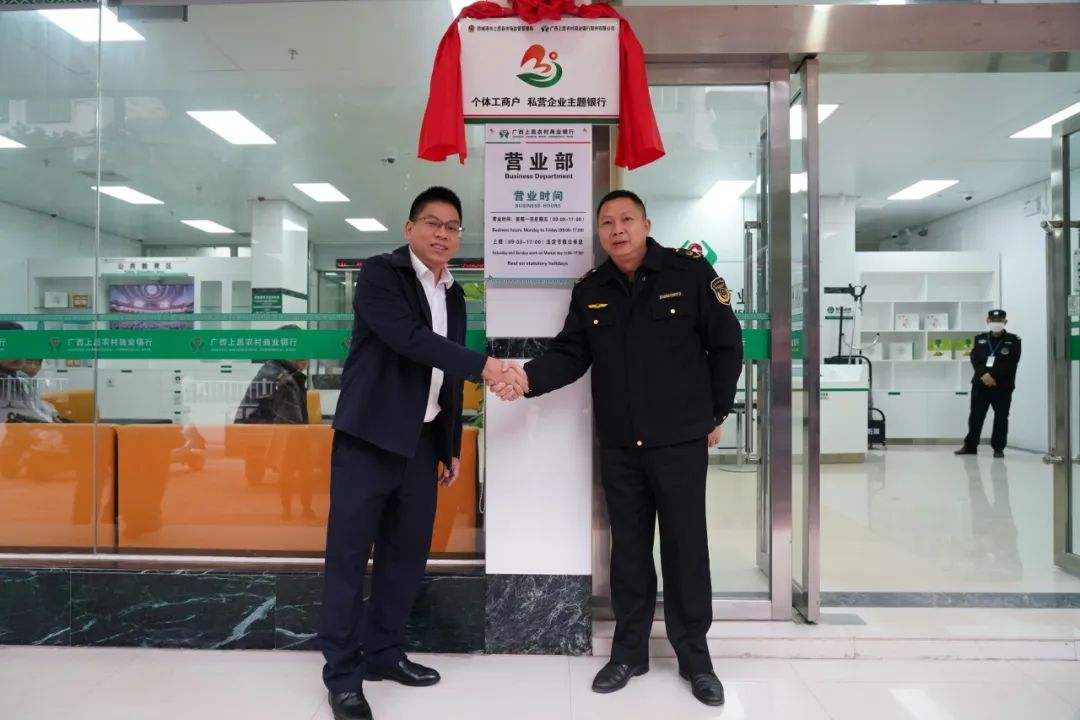 11月14日,上思县市场监管局携手广西上思农村商业银行股份有限公司在思阳镇中华路网点举行上思县首家“个体工商户、私营企业主题银行”揭牌仪式。