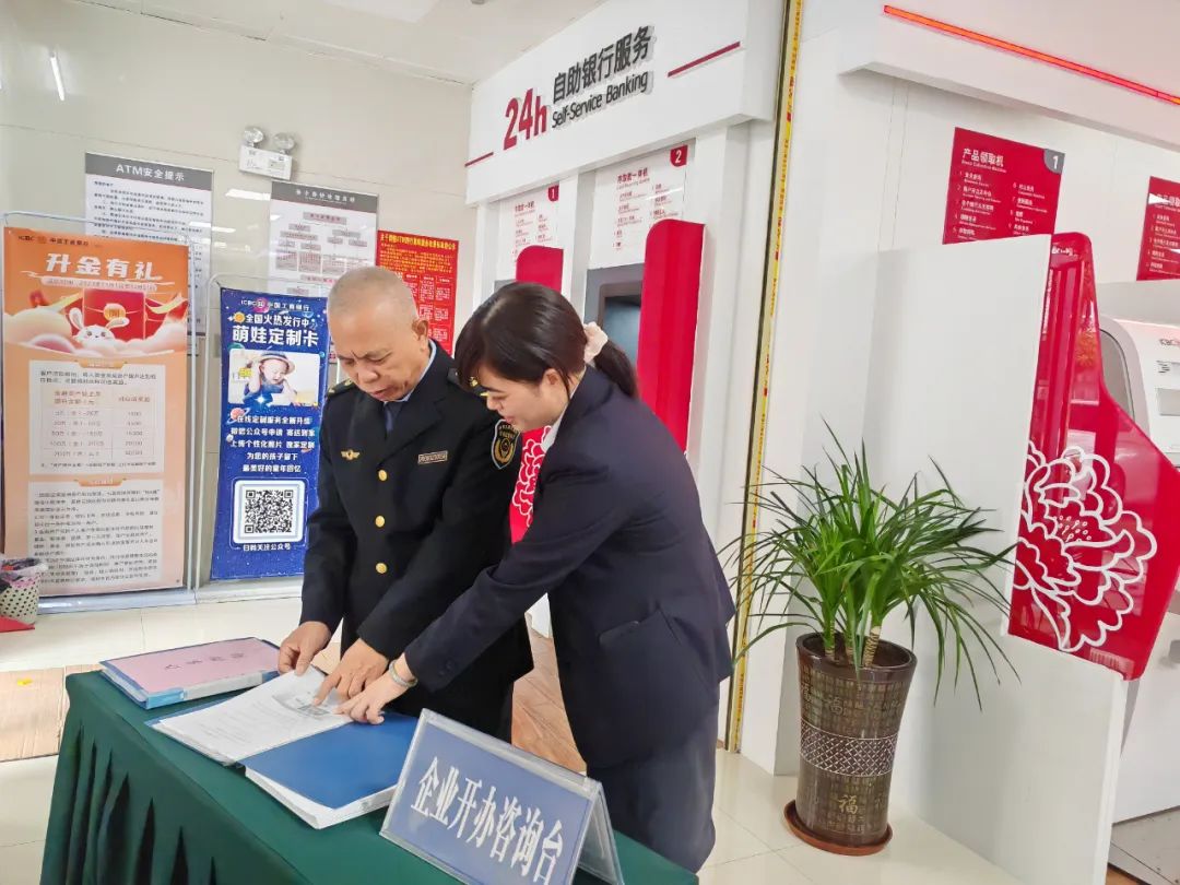 11月30日,东兴市市场监督管理局联合中国工商银行东兴市支行在兴东路金园支行网点举行东兴市首家“个体工商户、私营企业主题银行”揭牌仪式。
