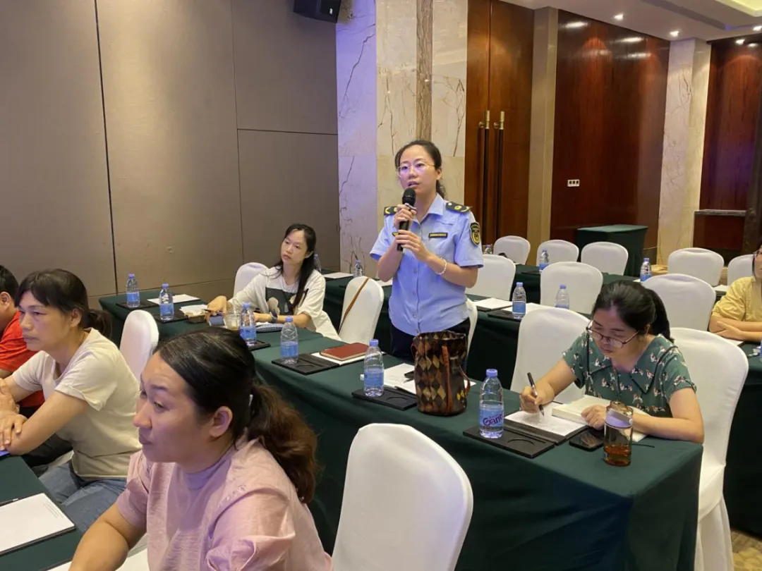 培训班上,餐饮安全监管科科长作餐饮服务食品安全监管实务培训,主要内容包括校园食品安全监管、重大活动食品安全保障、餐饮环节许可核查、执法办案等内容。培训互动环节,参培人员踊跃发言,授课人细致答疑解惑,现场讨论热烈,培训效果良好。