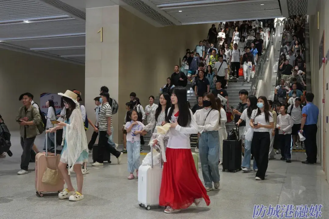 为保障旅客出行安全顺畅,防城港车站提前谋划、积极作为,精准研判客流走势,依据车票预售及实时客流数据,动态加开、重联、恢复开行至南宁、广州、桂林等热门方向动车组列车,全力扩充高峰运能。防城港北站充分发挥“刘三姐•金花茶”服务品牌优势,为旅客提供购票引导、搬运行李、候车问询等精准服务;针对边境游、跨境游旅客密集到达的实际情况,东兴市站提前对接地方交通部门,加密公交接驳班次、延长运营时间,同时,在出站口增设2个人工检票通道,优化旅客出站流线,全力畅通旅客出行“最后一公里”。