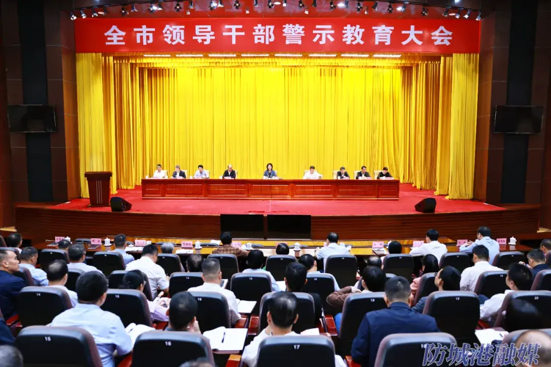 11月17日,全市领导干部警示教育大会召开,市委书记黄江出席会议并讲话,强调要深入学习宣传贯彻党的二十届四中全会精神,深入贯彻落实习近平总书记关于全面从严治党的重要论述和关于党的自我革命的重要思想,深刻汲取兰宏严重违纪违法案件的沉痛教训,教育引导领导干部反躬自省、正己修身、以案为鉴、以案促改、以案促治,推进清廉防城港建设提质增效,推动全面从严治党向纵深发展,统筹建好政治生态、自然生态“两个生态”,为奋力谱写中国式现代化防城港篇章提供坚强作风保障。市长邱明宏、市人大常委会主任孔建忠出席会议。