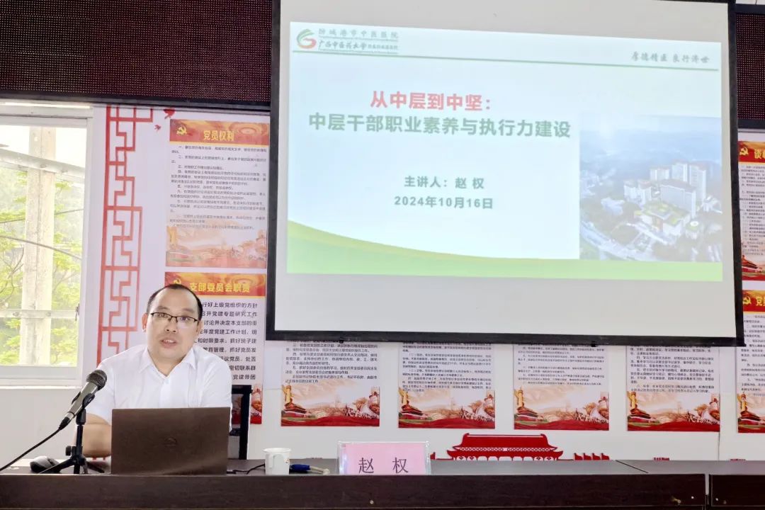 医院党委副书记、纪委书记赵权讲授党课《中层干部职业素养与执行力建设》。