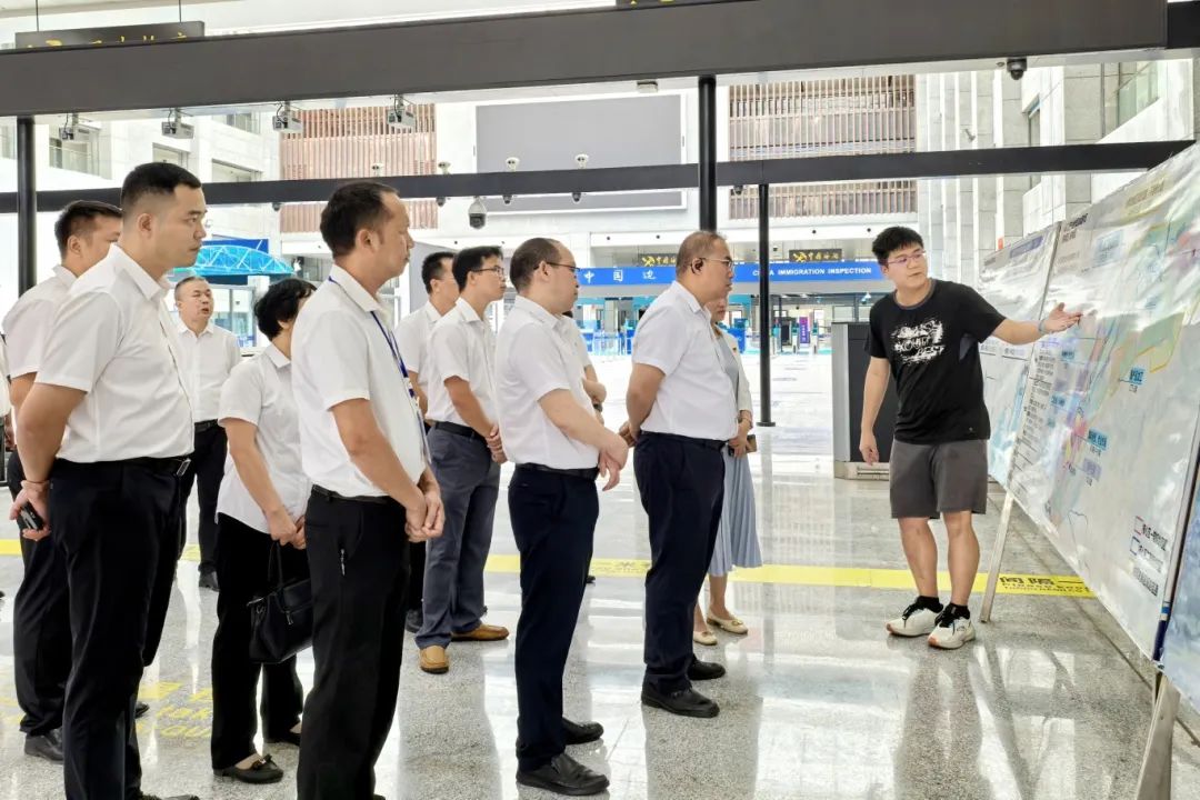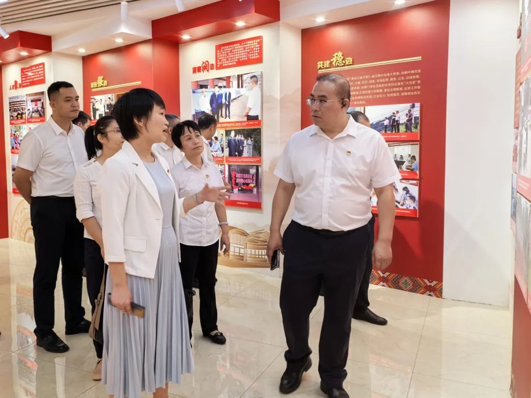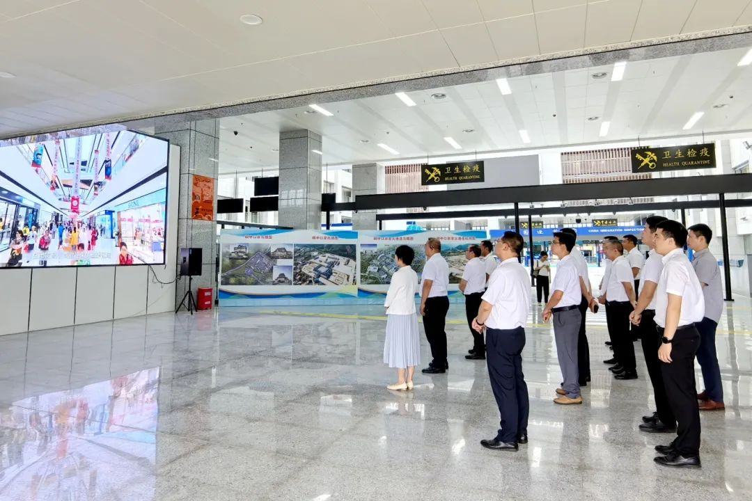 当天下午,一行人来到峒中口岸联检大厅,了解口岸现代化、专业化、智能化、信息化建设情况。通过讲解员讲解、视频展播等形式,全面了解峒中口岸发展史、峒中边境文化和未来发展建设规划,零距离感受新、旧峒中口岸建设面貌的巨大变化。