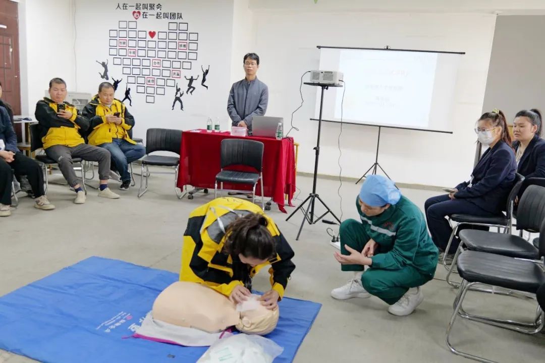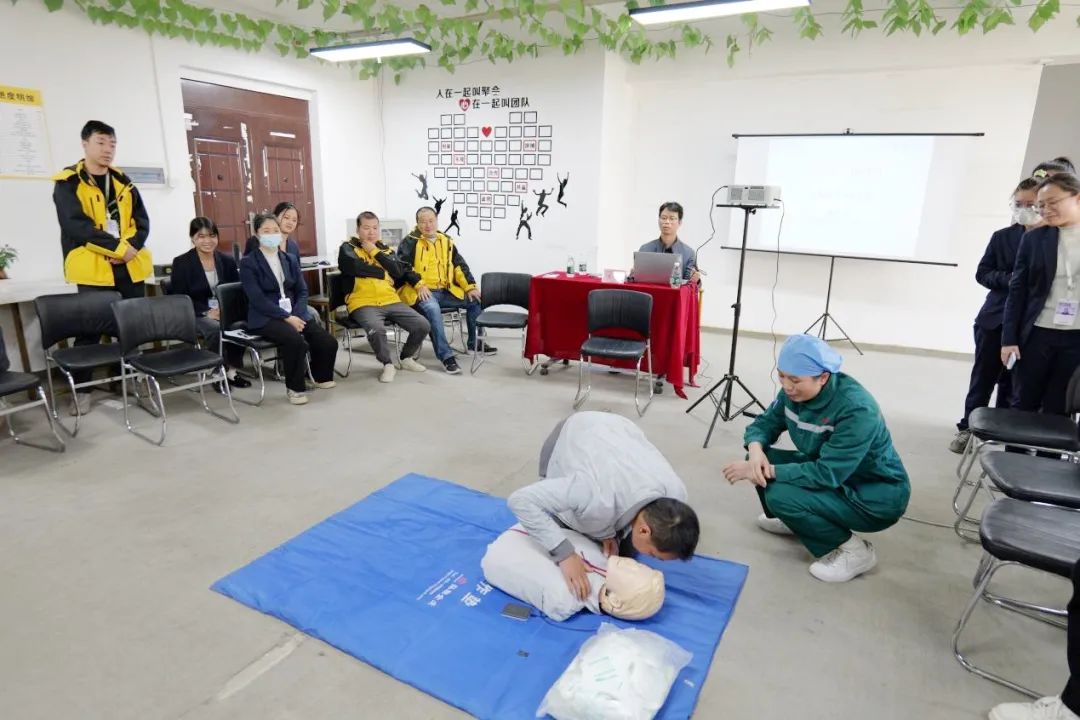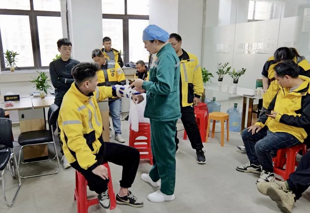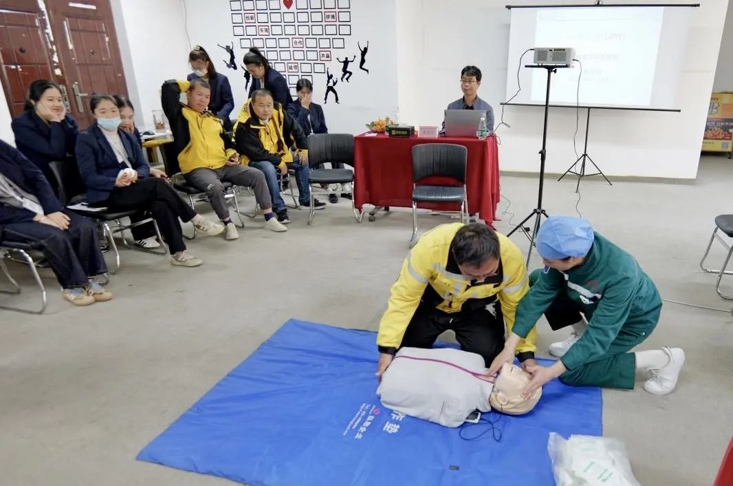 活动当天,急诊重症党支部书记、急诊医学科主任黄忠绍副主任医师为该公司的几十位站长、组长、骑手培训急救知识,内容涵盖心肺复苏、现场急救技术、骨折固定、外伤包扎止血、气道阻塞处理以及如何正确拨打“120”等。黄忠绍书记着重讲解了心肺复苏的操作要领,并让党员志愿者利用模拟人进行现场演示,骑手们在培训讲师的指导下,积极参与模拟演练,对应急救护知识有了更直观的体会,进一步掌握了应急救护的核心要领。