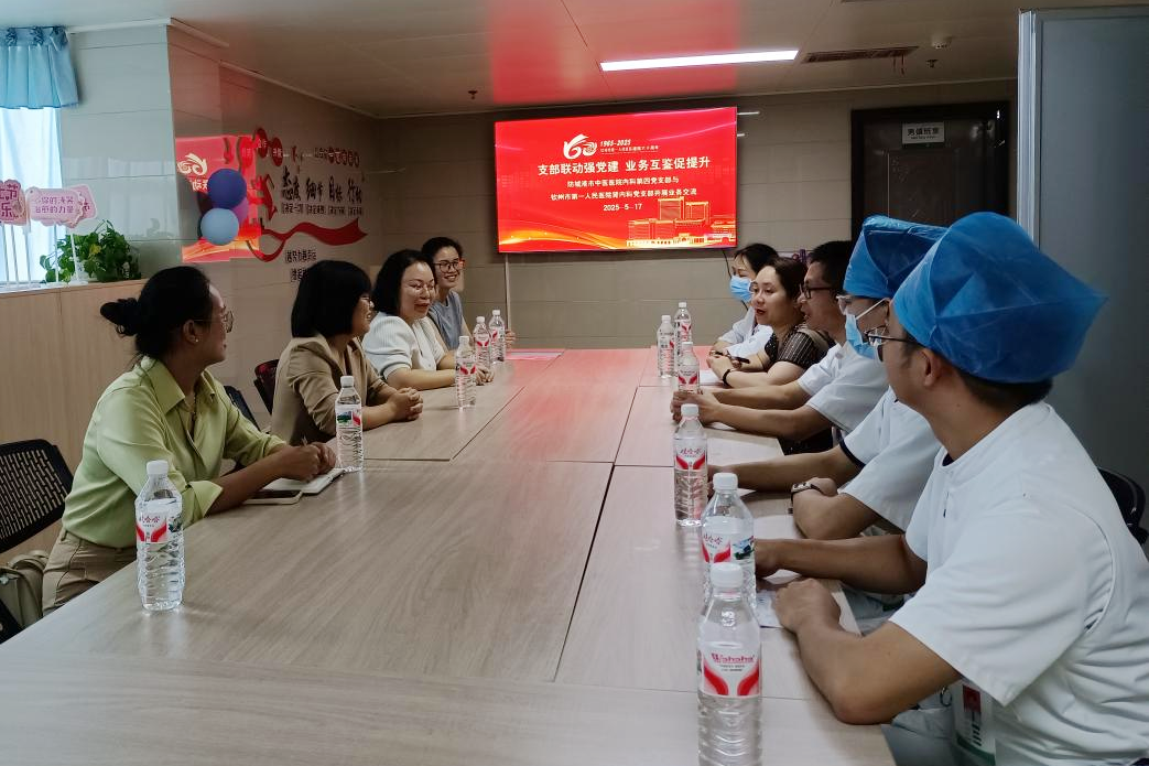5月17日,防城港市中医医院内科第四党支部与钦州市第一人民医院肾内科党支部在钦州市第一人民医院肾内科党支部党员活动中心联合开展“支部联动强党建 业务互鉴促提升”主题共建活动。此次活动通过参观阵地建设、科室业务研讨等形式,进行跨区域医疗单位基层党支部党建业务交流探讨。