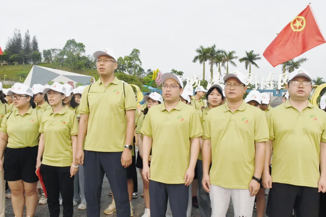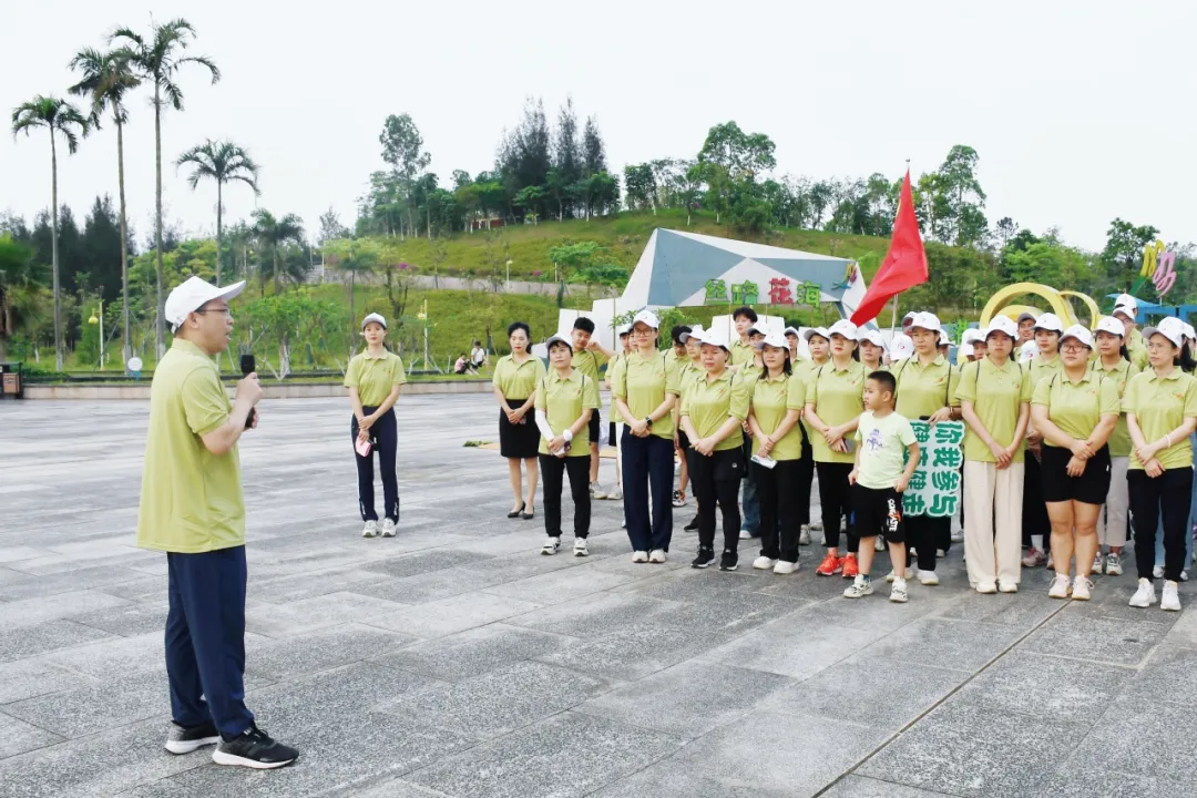 大家齐唱院歌《拥抱美好未来》和歌曲《我和我的祖国》,嘹亮的歌声在园博园北广场上空回荡,随后大家便迈开脚步开启健步走旅程。