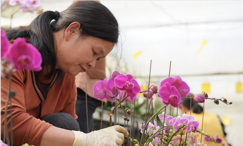 除了蝴蝶兰外,该基地还种植了国兰、墨兰、捧心兰等10多个品种的兰花。长期以来,基地还为周边村民提供了上百个就业岗位,工人每月最高工资可达3500元/人。“每天在花丛中工作,人都变美了。”在基地工作的叶女士一边忙活一边笑言。