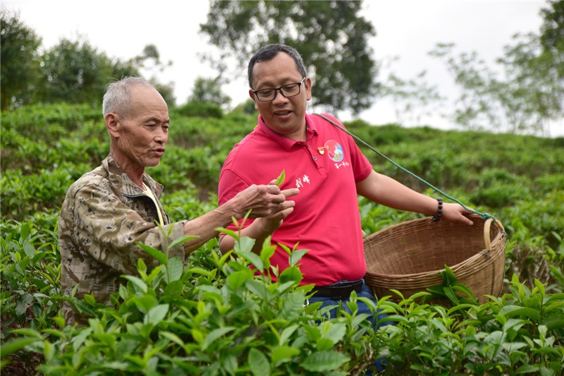 黄景超向驻村第一书记刘峰介绍茶园的发展情况。