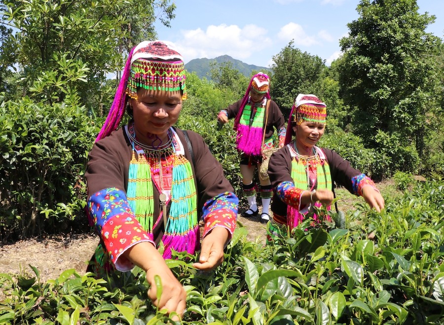 近日,防城区十万山瑶族乡茶农在采摘茶叶。