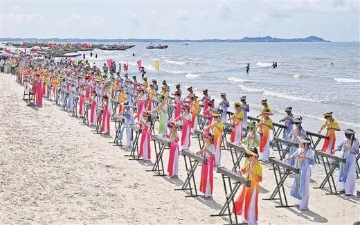 余音绕梁的京族百人独弦琴表演吸引着游客。 东兴市融媒体中心供图
