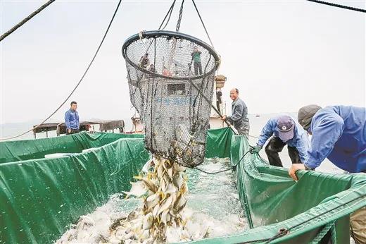 抗风浪网箱养殖喜获丰收。 林 强/摄