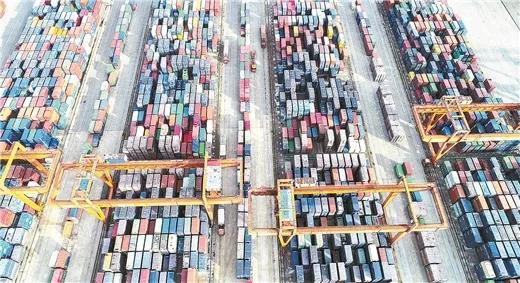 防城港航运枢纽效应凸显。图为港口码头集装箱堆场。 张国兴/摄