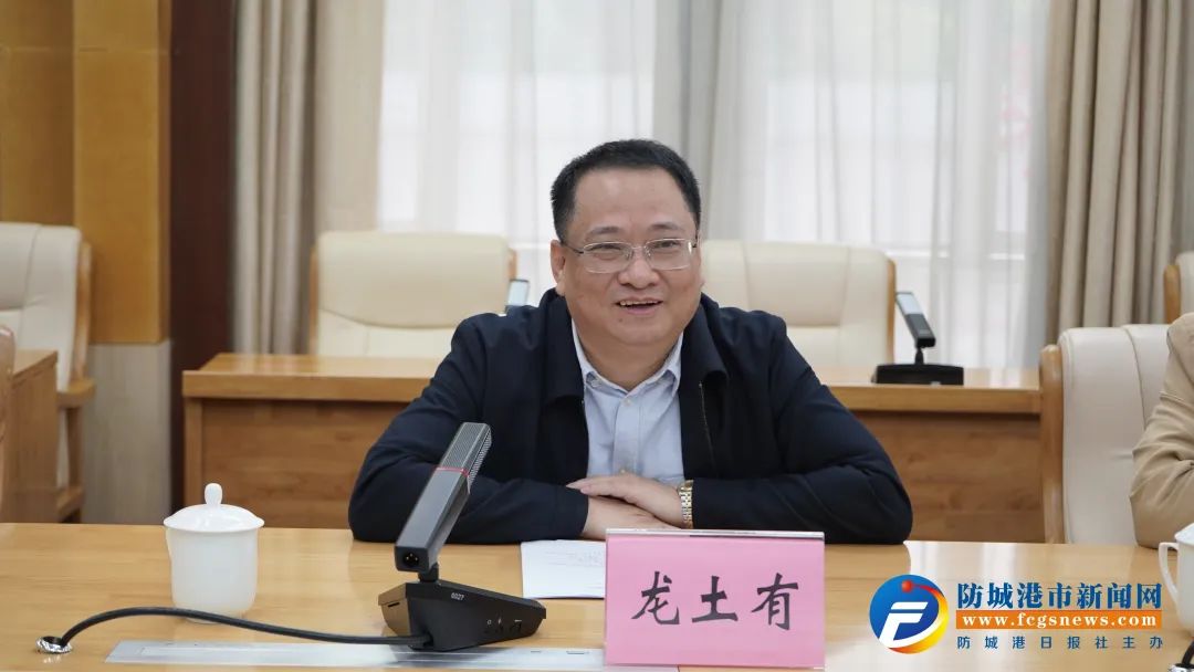 黄江对龙土有一行的到访表示欢迎,对中新社广西分社一直以来给予防城港市的关心和支持表示感谢。黄江表示,今年是防城港市建市30周年、建港55周年,城市竞争力后发优势明显,拥有防城港国际医学开放试验区、东兴国家重点开发开放试验区和跨境经济合作区等多个国家级开发开放平台。今年以来,全市上下坚决贯彻落实党中央、国务院和自治区党委、政府决策部署,大力实施招商引资突破年、项目建设攻坚年行动和促进营商环境大提升专项行动“2+1”工程,今年继续一路向上向好,全市经济社会发展再上新台阶。中新社广西分社在为防城港加大对外宣传方面给予了极大支持,拓宽了防城港海外传播新渠道,大幅提升防城港城市形象和知名度、美誉度。希望双方一如既往保持良好的合作关系,持续推出有深度、有分量、有影响的新闻报道,为防城港发展加油鼓劲。