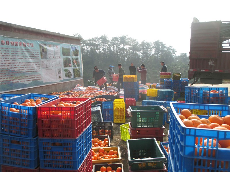 1月20日上午,上思县公正乡三英村相国家庭农场一座房子前的晒场旁,停放了好几辆小车和一辆大卡车(见右图)。晒场中人们喜笑颜开,有的在选果子装框、有的在过称、有的在装车。“我是经朋友介绍,知道相国农场的沃柑少核、品相靓丽、味道鲜美,才前来收购的,今天要拉走近3万斤。”从浙江赶来收购的果贩江老板说。