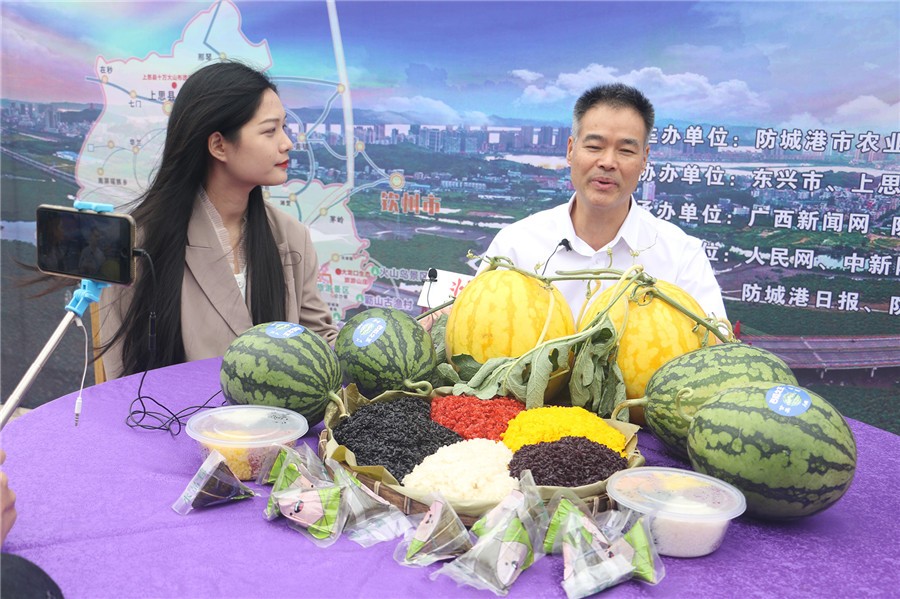 五色糯米饭、虾饼、香粽、艾糍粑、西瓜、玉米……活动现场,各县(市、区)的展台上摆满了地方美食和特色农产品。伴随着现场弹奏的独弦琴声,区内多家网络媒体代表和网红、游客品尝着特色美食、赏着海上红树林美景,感受我市休闲农业和乡村旅游的魅力。活动中,网络媒体、网红直播整个启动仪式,并逐一直播各县(市、区)的展台。
