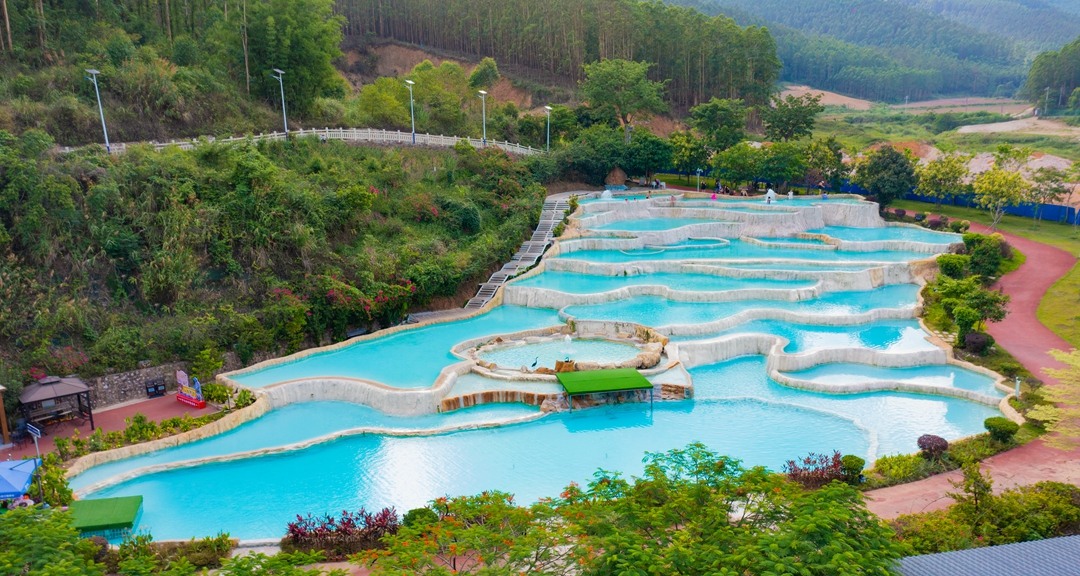 十万大山布透温泉是由国有旅游投资平台上思可乐旅游发展有限公司于2017年开发建设,项目整体规划面积3000亩。一期项目已建成占地300亩的核心区,拥有特色温泉泡池,游客中心、生态停车场、特色餐厅、音乐吧、民俗风情广场、三台阁、彩虹步道、温泉叠瀑等景观和设施;温泉酒店建有星空房车、魔幻冰屋、半山别墅、湖畔民宿、半山民宿、船坞民宿等各类特色住宿。景区自开业以来深受广大游客喜爱,逢重要节假日游客络绎不绝。