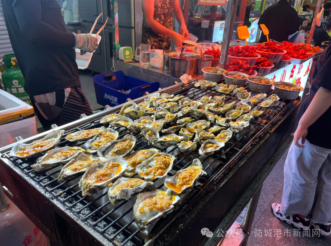 防城港作为一座滨海城市,海鲜自然是夜市中的主角。记者看到,夜市里从皮皮虾、香辣蟹到各种鱼类、贝类,应有尽有。这些海鲜新鲜肥美,夜市里的商贩烹调手法也是千变万化。清蒸、椒盐、白灼,每一种都保留了海鲜的原始鲜美,让人回味无穷。而新颖独特的生腌做法,更是为食客们带来了全新的味蕾体验。“这是我第一次尝试生腌,没想到味道还不错。”来自重庆的游客边品尝边夸赞。