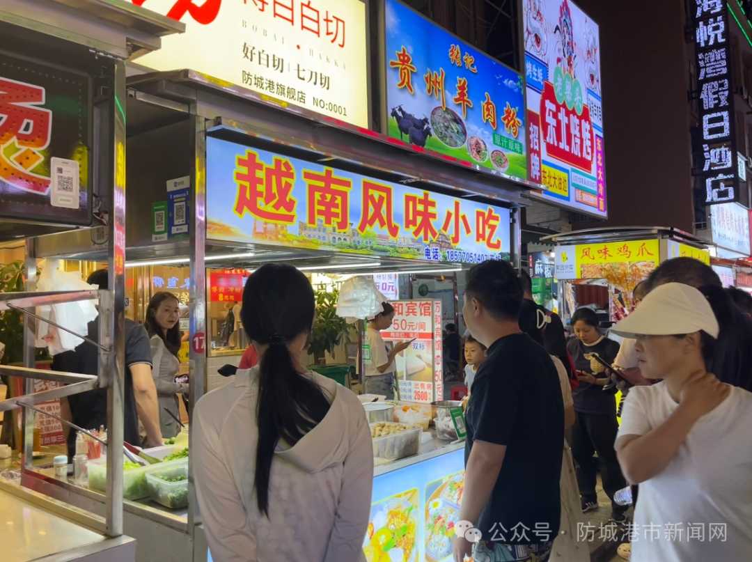 我市与越南接壤,夜市里不仅汇聚了本土的美食精华,还融入了越南的异域风情,越南春卷、越南米粉、滴漏咖啡等越南特色小吃也成为夜经济中一道独特的风景线。不仅满足了食客们的味蕾需求,更让他们在品尝美食的同时,感受到不同的文化韵味。“不用到越南就可以尝到地道的越式美味,真是太方便了!”来自南宁的王女士兴奋地说,自己一直对越南美食情有独钟,但由于工作繁忙,一直没有机会去越南旅游。这次来到防城港,能够在夜市里品尝到如此地道的越南小吃,让她感到非常满足。