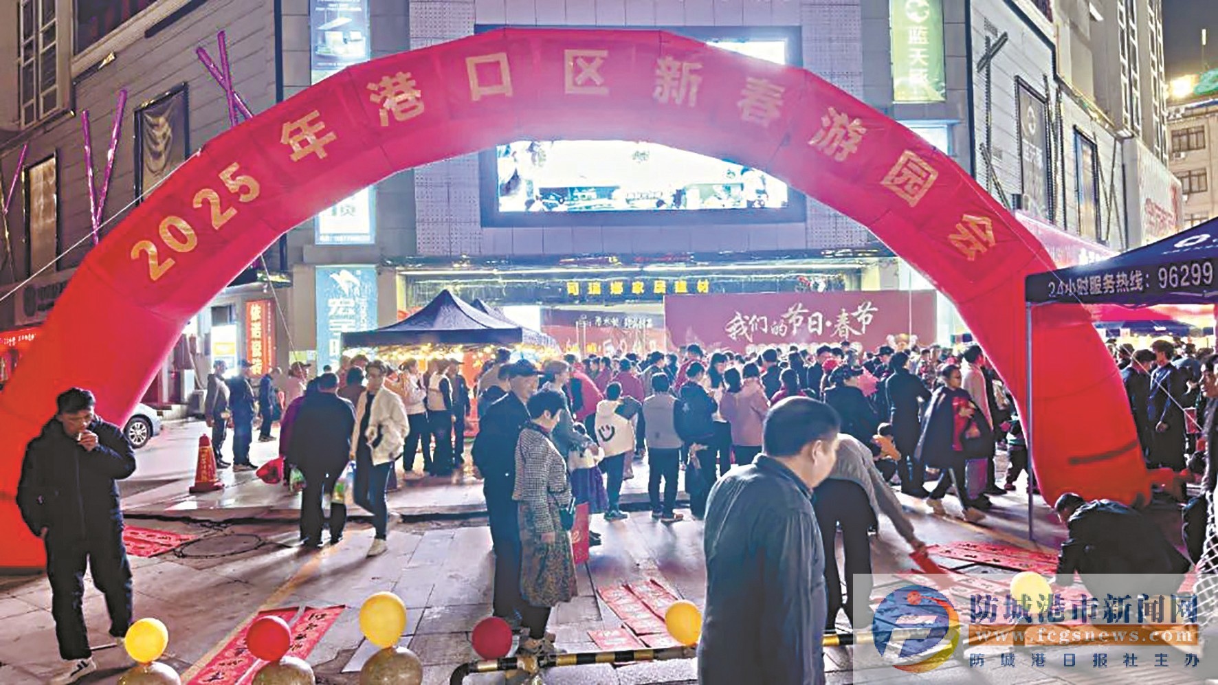本报讯 1月25日晚,由港口区委宣传部、港口区文化广电体育和旅游局主办,港口区文化馆和沙潭江街道办事处等协办的“我们的节日·春节”2025年新春游园会在行政中心区司瑞娜广场举办(见上图)。