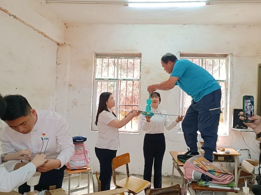 活动现场,党员志愿者们对那余小学的校园环境进行了系统的修整提升。教室里,大家全力修缮天花板,解决漏水问题;走廊上,大家平整坑洼地面,更换老旧门窗、照明和通风设备,同时,也对卫生设施进行疏通改造,并安装了标准化的校园打铃系统。整个改造过程中,党员志愿者以积极、细致的工作态度,为那余小学师生创造了安全舒适的教学环境。