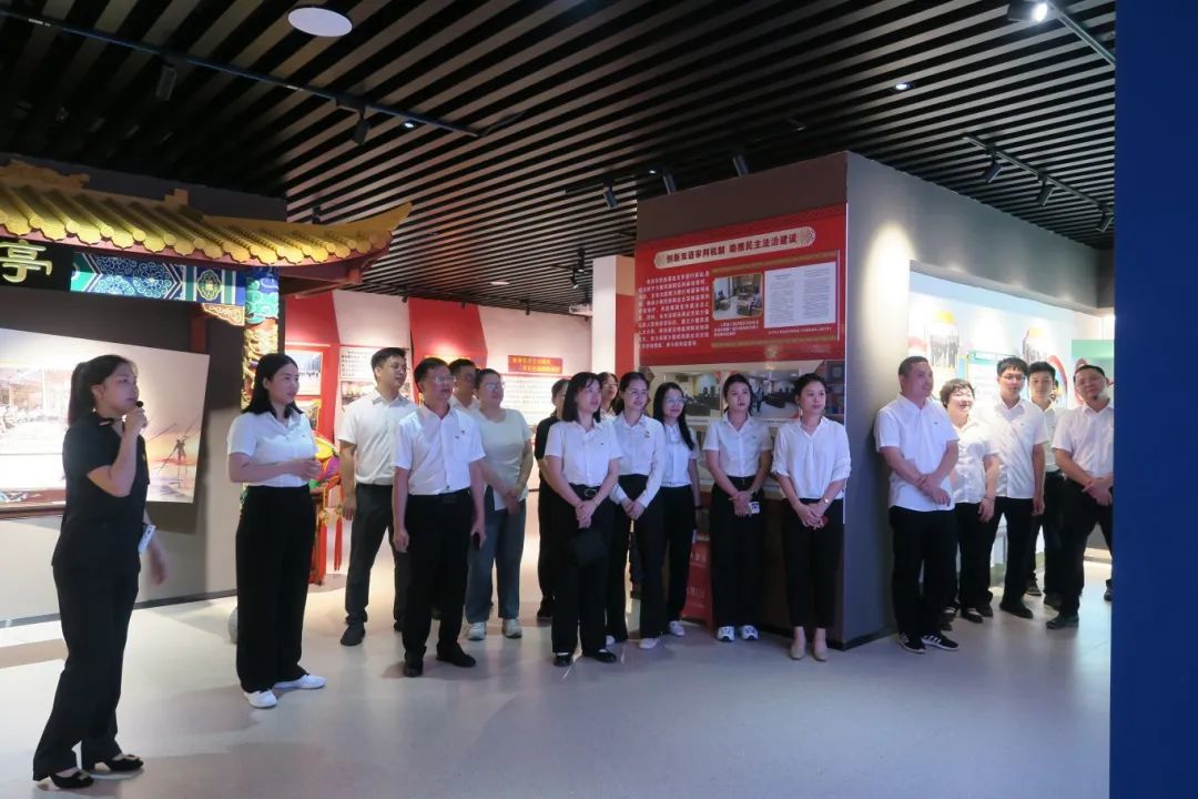 活动中,党员干部在讲解员的引导下有序参观各个展区,通过图文展板、实物陈列与多媒体互动等形式,深入了解了防城港市两级法院几十年来法治建设成就以及人民法院的职能使命。“边关情”“民族风”展区讲述了京族村的特色普法故事,展现了法治在促进民族团结、维护边疆稳定中的关键作用,以及法治与民族文化相互交融的独特魅力;“红色魂”展区里,全体党员干部一同观看了主题党日活动、支部共建活动影像等,进一步领会到党组织在司法改革、诉源治理中发挥的核心引领作用,令人印象深刻;“法院史”展区里,一张张泛黄的裁判文书映入眼帘,诉说着革命年代司法工作的艰辛与坚守。大家不时驻足观看,在沉浸式体验中感悟法治精神,真切体会党建引领下的司法温度。