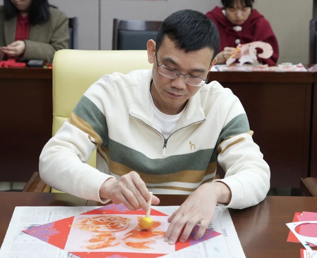 随后,活动进入“文化传承 匠心铸魂”手工体验环节。现场精心设置剪纸、拓印、醒狮灯笼制作、万字结编制四个传统技艺体验项目,供大家自主选择、踊跃参与。