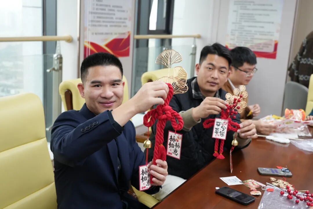自编“同心结”。大家还亲手编织了寓意吉祥团结的“万字结”。手中红线穿梭往复,如同党员干部心往一处想、劲往一处使的生动写照,让大家深入体会个人与集体相连、奋斗与时代同行的深刻内涵。