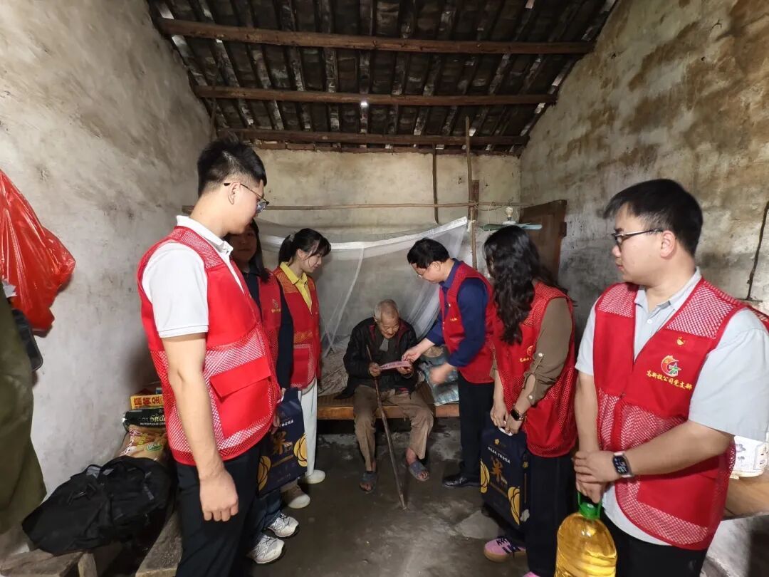 最后,团队拜访了松木万组的百岁老党员包德才。大家围坐在这位历经风雨的老党员身边,聆听他讲述革命岁月和奋斗往事,感受老一辈共产党员的坚定信仰与奉献精神。队员们关切询问他的健康状况,送上生活物资和慰问金,并叮嘱家属悉心照料,让老人安享幸福晚年。
