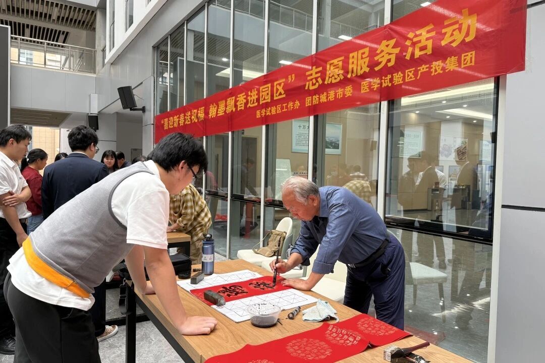 新春已至,年味渐浓,为弘扬中华优秀传统文化,传递节日温暖,进一步加强医学试验区园区企业的幸福感、归属感,2月6日下午,医学试验区工作办联合团市委、医学试验区产投集团等单位开展“喜迎新春送祝福 翰墨飘香进园区”志愿服务活动,为园区企业及干部职工送上了一份满载祝福的“文化年货”。