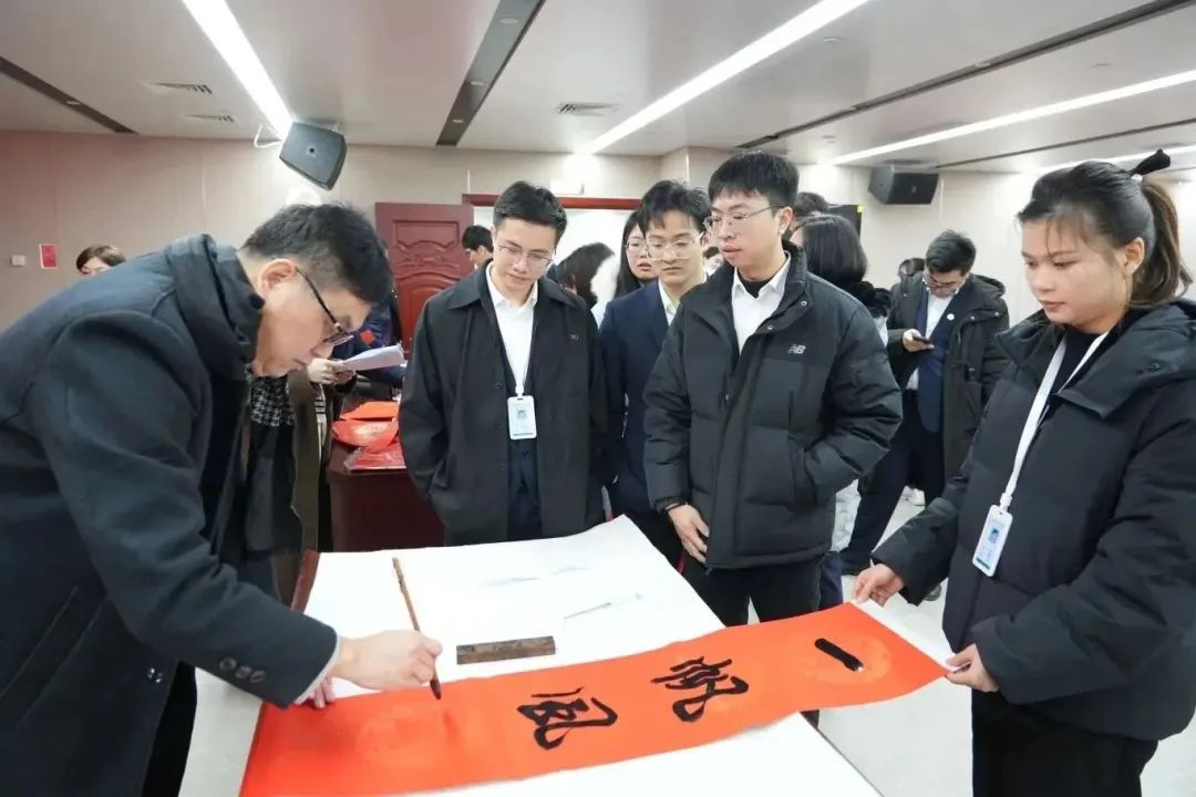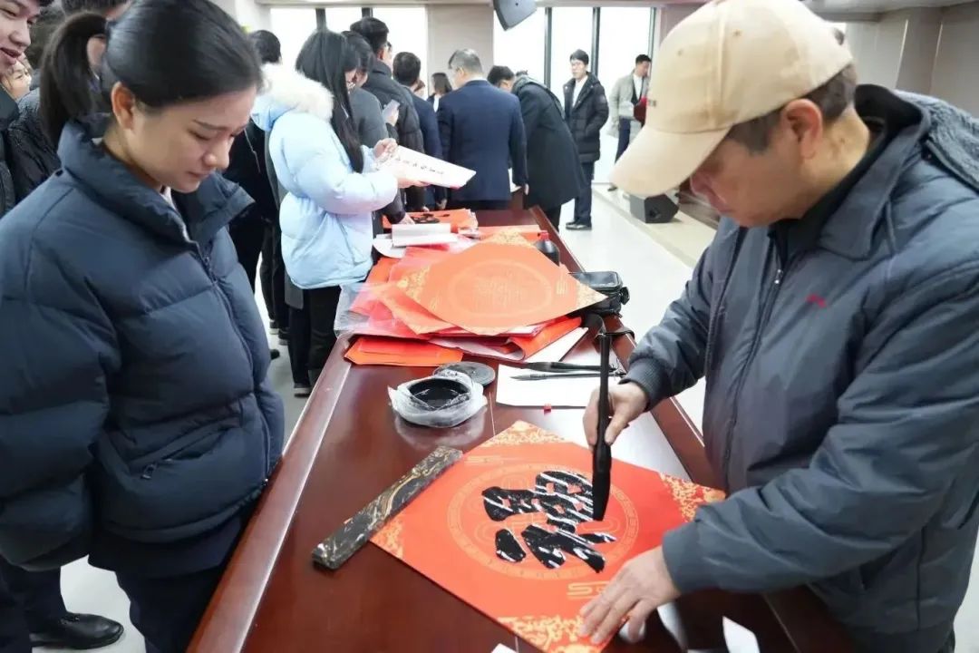 活动现场热闹非凡,前来求“墨宝”的干部职工络绎不绝,大家围在桌前与书画名家互动交流,零距离感受书法意韵,沉浸在传统文化艺术之中,纷纷表示,“春联还是手写的更有年味。”