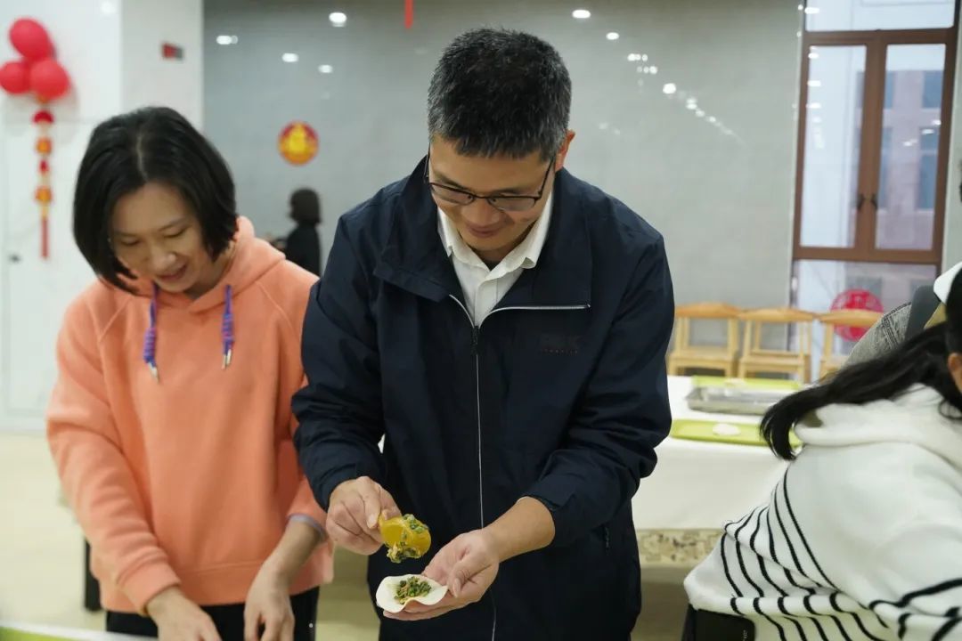 各类游园活动别出心裁,大家以小组的形式,开展趣味盎然的团体活动。拔河比赛、筷子运球、一起“趣”赶鸡、群龙取水……大家热情高涨,斗志满满,为了团队的胜利全力以赴。现场还准备了精美的礼品,让每位参与者都能满载而归,尽情享受玩乐与收获的双重喜悦。最后,大家一起前往食堂包饺子,现场烹饪分享,大家边包边聊、边煮边吃,食堂充满了欢声笑语,为即将到来的新春佳节增添了融融暖意。