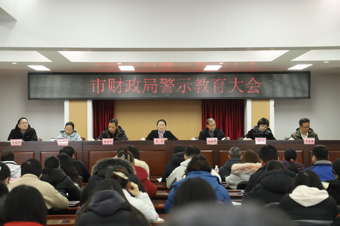 为深入学习贯彻党的二十届四中全会、二十届中央纪委全会及自治区、全市领导干部警示教育大会精神,纵深推进全面从严治党,筑牢财政干部廉洁自律思想防线,近日,市财政局召开警示教育大会,全局全体干部职工参会。会议由局党组成员、副局长韦懿丽同志主持,局党组书记、局长刘悦同志作讲话,通过通报典型案例、集中学习材料、科室代表发言等形式,开展沉浸式警示教育,为全体财政干部职工敲响廉洁警钟。