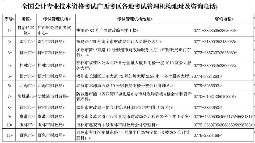 《广西壮族自治区财政厅广西壮族自治区人力资源和社会保障厅关于2026年度全国会计专业技术初级、高级资格考试广西考区考务日程安排及有关事项的通知》(桂财会〔2025〕33号),网址: