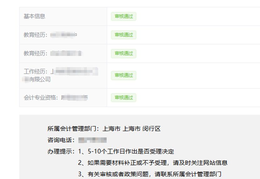 自行登录查看:您必须自行登录“全国会计人员统一服务管理平台”来查看审核状态。