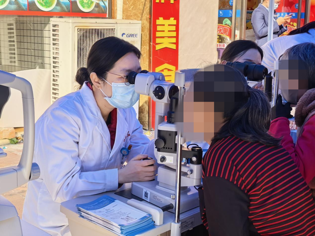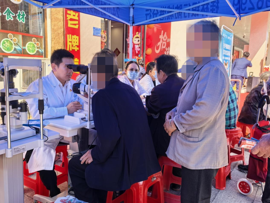 活动现场,我院外科第二党支部、内科第一党支部的专家团队为当地群众开展了全面且细致的义诊服务。此次义诊包含裂隙灯检查、眼底检查、医学验光、干眼检查以及血压、血糖检测等项目,同时还分发了健康知识宣传册。针对近500名群众的检查结果,专家团队精准地给予了合理指导,同时就全身相关眼病提出了明确的注意事项及科学的治疗建议,旨在增强民众对眼病的重视程度,特别是加强糖尿病性视网膜病变的慢病管理,积极倡导科学的治疗理念。