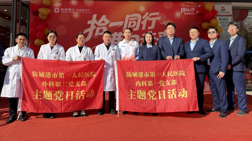 近日,我院外科第二党支部、内科第一党支部携手桂林银行防城港港口支行与营业部党支部、中共防城港市公安局交通管理支队委员会,共同举办了“党建引领聚合力 医心医意护健康”党建共建主题活动。