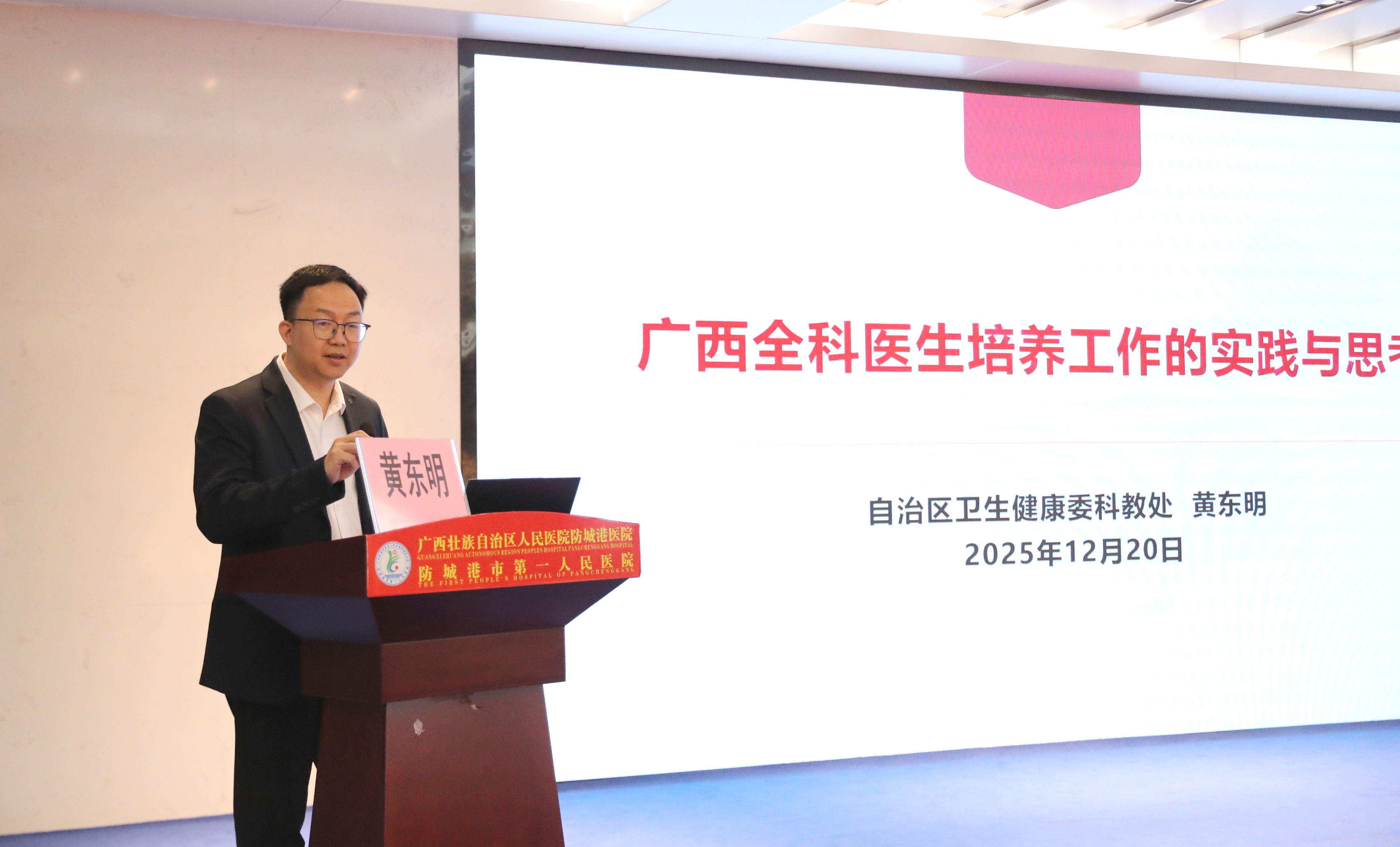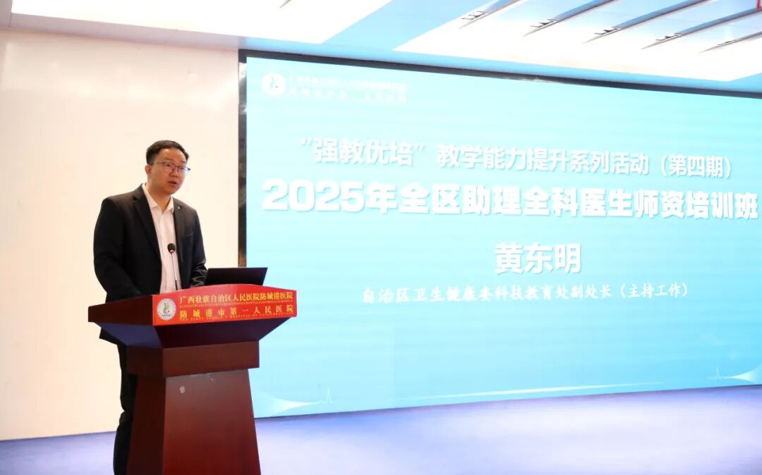 开班仪式上,黄东明在致辞中指出,全科医生是居民健康的“守门人”,师资队伍则是全科医学教育的“压舱石”与“引路人”。他强调,本次培训是响应国家医学教育创新发展要求、对接广西基层群众健康需求的关键举措,旨在靶向破解基层师资在政策理解、教学能力、临床带教等方面的短板,从而推动助理全科医生规范化培训提质增效,为健康广西建设强基赋能。