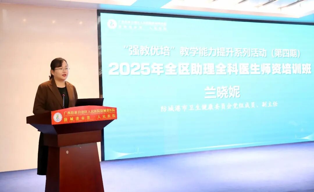 兰晓妮紧扣全市卫生健康事业高质量发展大局,深刻阐释了助理全科医生培养对于夯实基层医疗服务网底、守护人民群众生命健康的核心要义与关键作用,为培训工作的高质量开展校准了航向、注入了强劲动能,不仅赋予本次培训深厚的政策内涵与实践使命,更将有力助推“健康防城港”建设及防城港国际医学开放试验区发展。