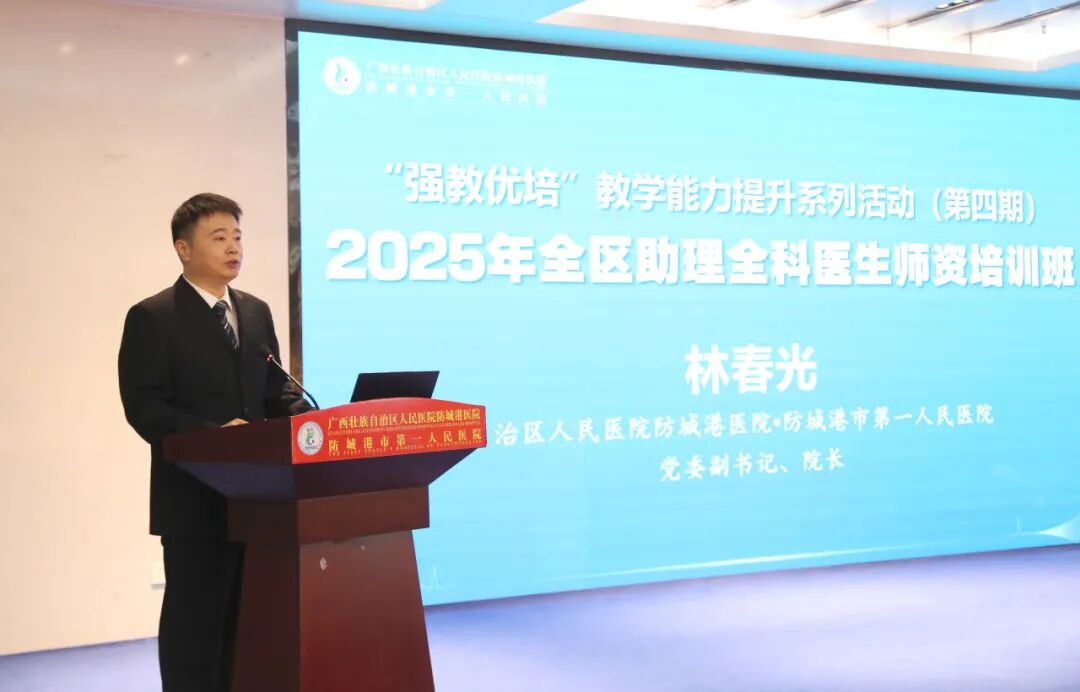 广西壮族自治区卫生健康委员会科技教育处副处长黄东明,防城港市卫生健康委员会党组成员、副主任兰晓妮,我院党委书记禤坤,党委副书记、院长林春光出席了开班仪式并讲话。来自全区27家培训基地的100多名教学骨干齐聚于此,我院全体教学主任、教学秘书及教学骨干共150人同步参训。此次系统培训将助力250余名教学工作者精进教学能力,为筑牢基层医疗人才根基注入坚实力量。