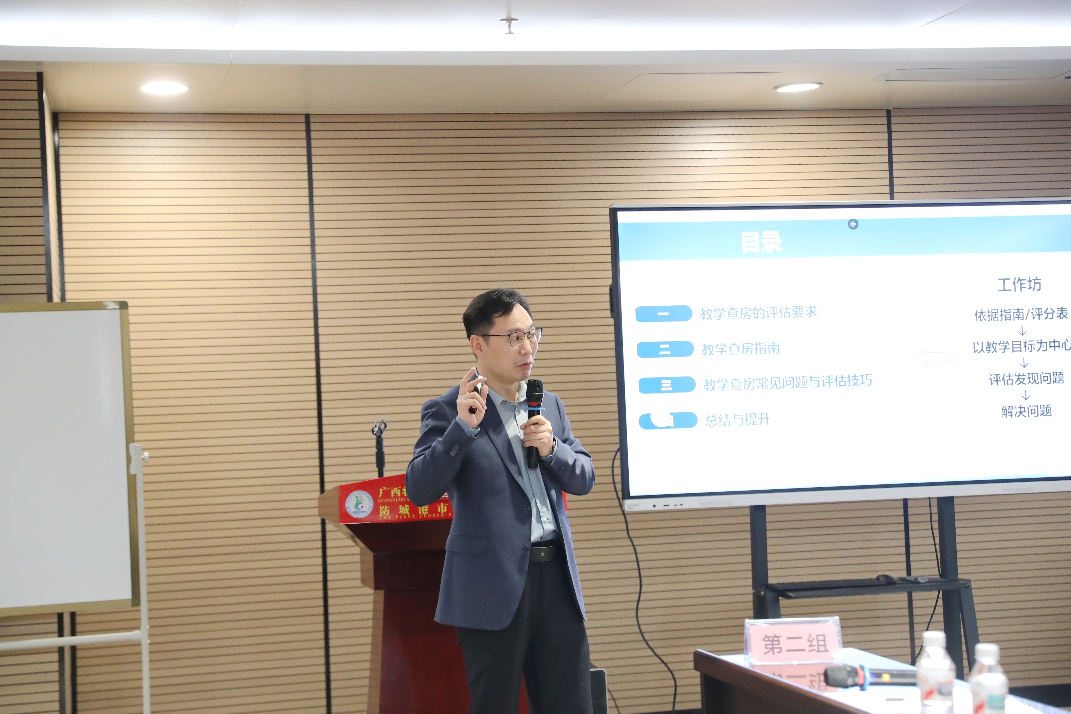 技能强化板块针对性突出。柳州市人民医院肖丽红、陆海欧团队指导设计全周期助理全科医生培训考核方案;广西壮族自治区人民医院吴东峰、蒿艳蓉团队规范标准化教学查房流程。我院刘强副院长结合区域医疗中心建设实践分享基地发展经验,张基业主任则系统教授基层场景下的医患沟通技巧。