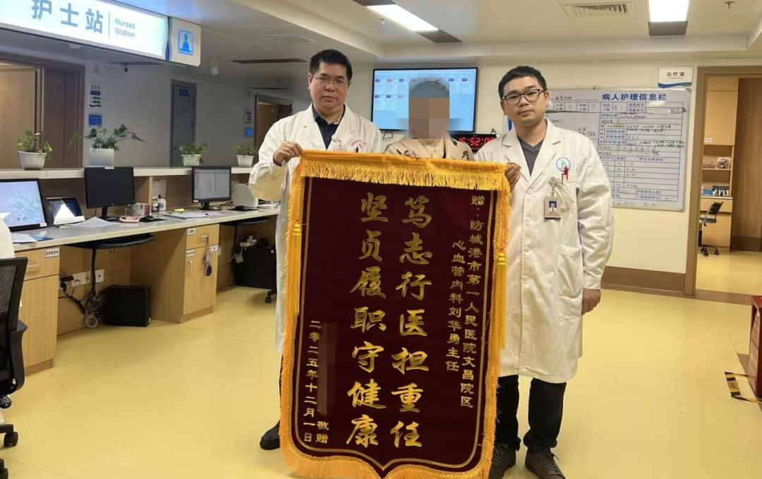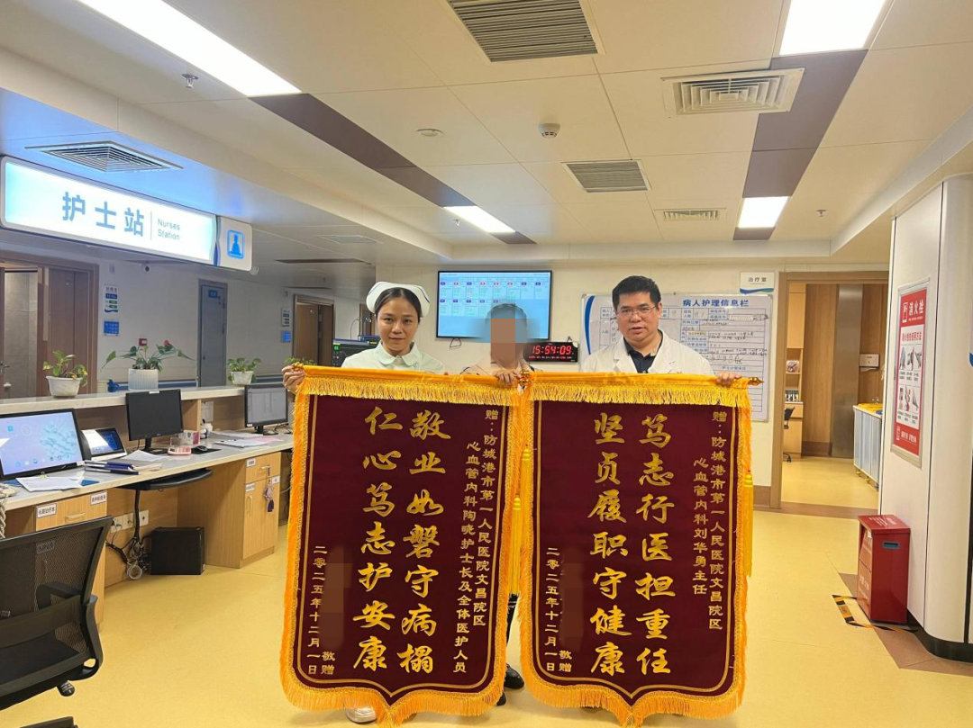 近日,我院文昌院区心血管内科收到两面满载感激之情的锦旗。赠送锦旗的是来自四千公里外的黑龙江籍患者何先生(化名)及其家属高女士(化名)。这不仅是对科室医疗技术与护理服务的认可,更是对医患之间真诚沟通与信任的生动诠释。