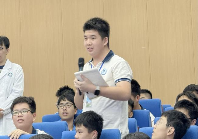 互动环节,现场气氛热烈,反响较好。学生们踊跃举手参与问答,体现出对近视防控知识的高度关注。对于参与并回答正确的同学,准备了精美小礼品予以奖励,这不仅提升了活动的趣味性和参与度,也有助于增强学生对爱眼护眼知识的理解与记忆,进一步扩大了健康科普宣传的范围和影响力。
