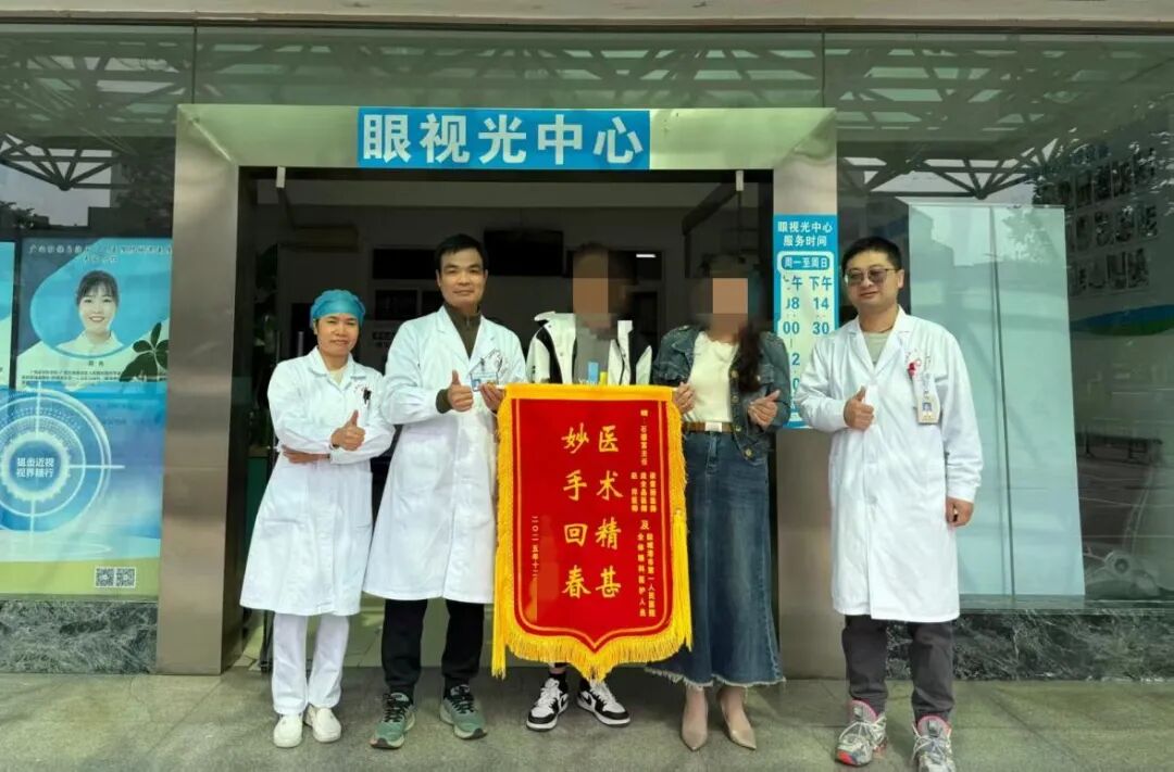 “非常感谢眼科的石德富主任、梁素丽医师、庞全晶医师及全体医护人员及时救治,术后精心护理,给我们带来了希望和温暖。”黄女士在感谢信中这样写道。字里行间,饱含着一位母亲由衷的谢意与感动。送来的锦旗上绣着的“医术精湛 妙手回春”,更是对眼科(视光中心)全体医护人员专业能力与人文关怀的高度肯定。