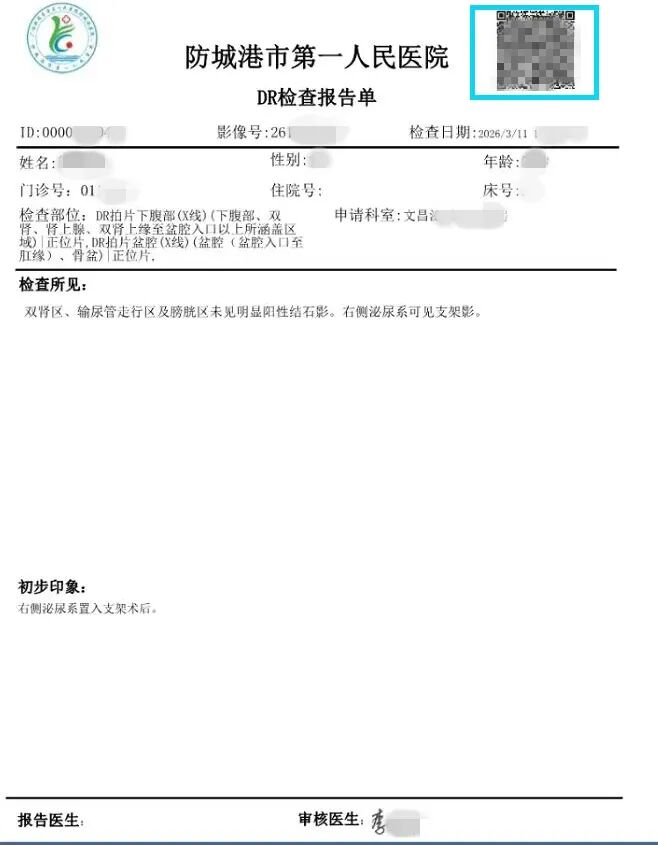 1.扫码:完成检查后,扫描影像报告单右上角的医保云二维码。