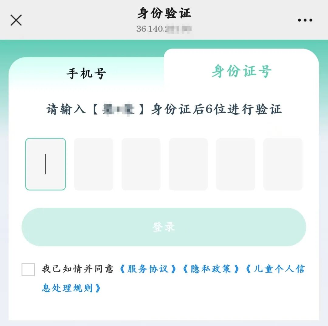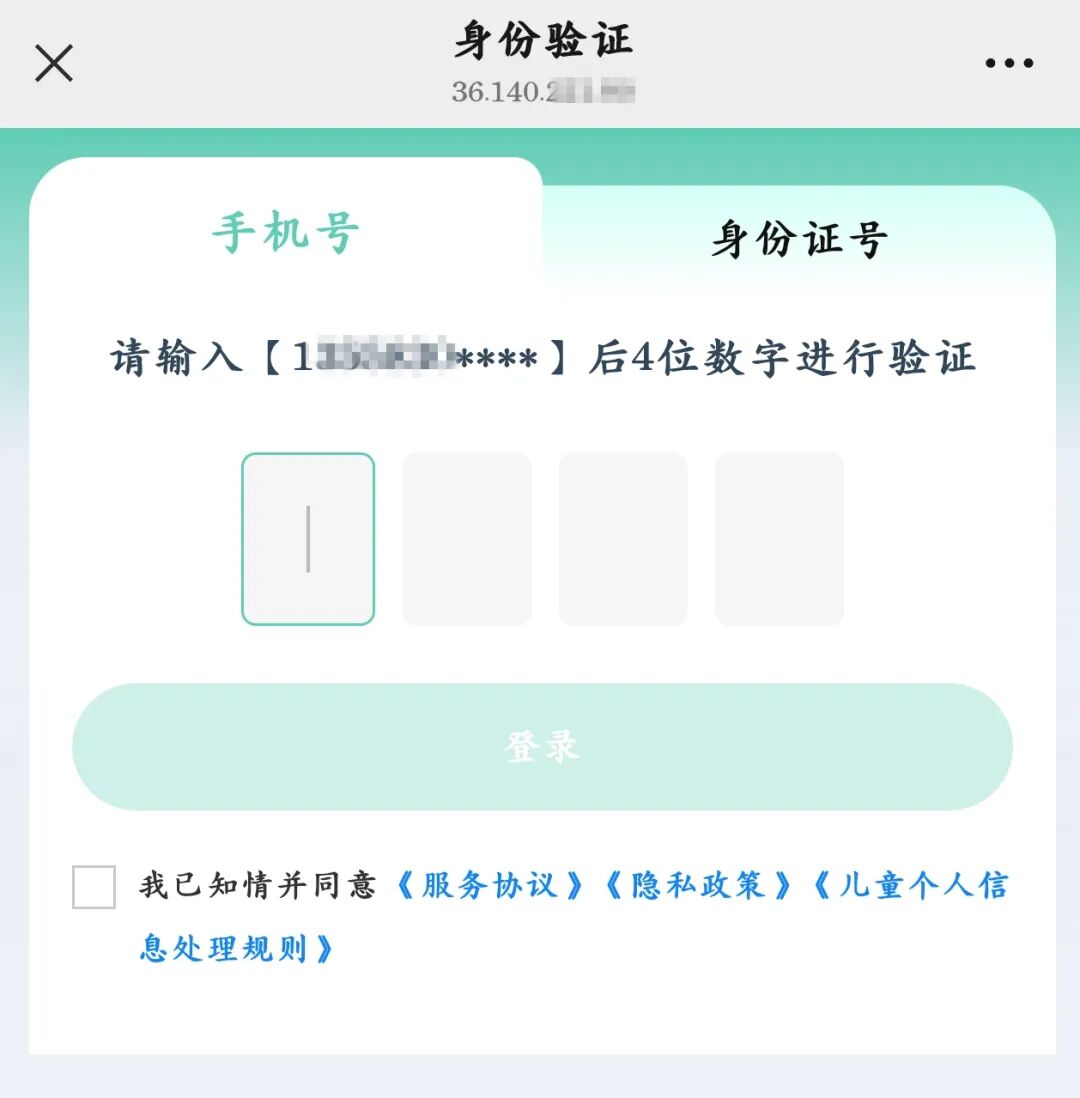 2.验证:输入手机号码后四位或身份证号码后六位进行身份验证。