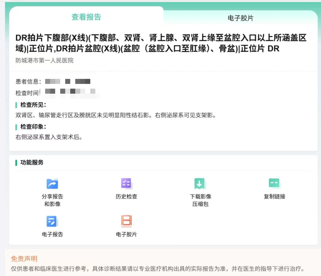 3.查看:可立即浏览并下载高清影像及报告,还能一键分享给家人或医生。