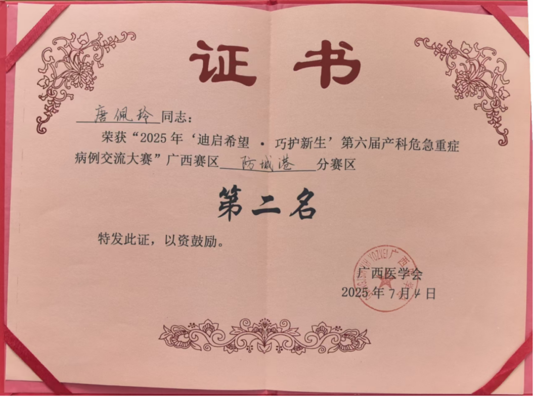 喜报丨我院产科医师在2025年“迪启希望·巧护新生”第六届产科危急重症病例交流大赛防城港分赛区荣获二等奖