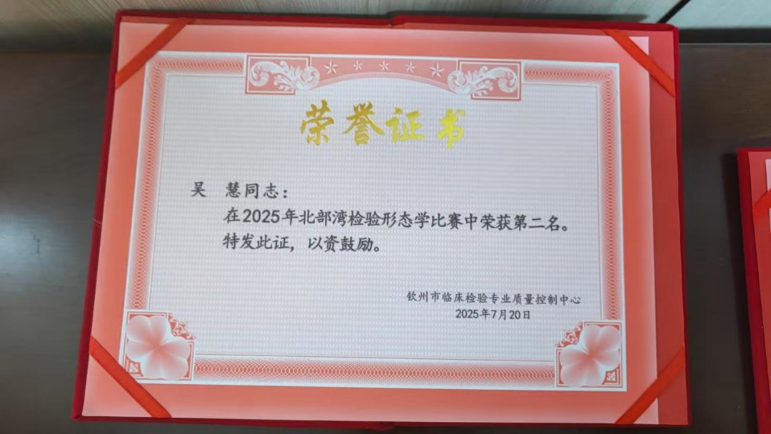 同期举办的北部湾地区第一届检验形态学比赛中,我院医学检验科吴慧、郑雅月同志凭借扎实的专业基础和技能以及稳定的临场发挥,在比赛中表现突出,分别荣获第二名及优秀奖。这一成绩不仅是对两位参赛人员个人能力的肯定,也体现了我院医学检验科在形态学检验领域的实力。