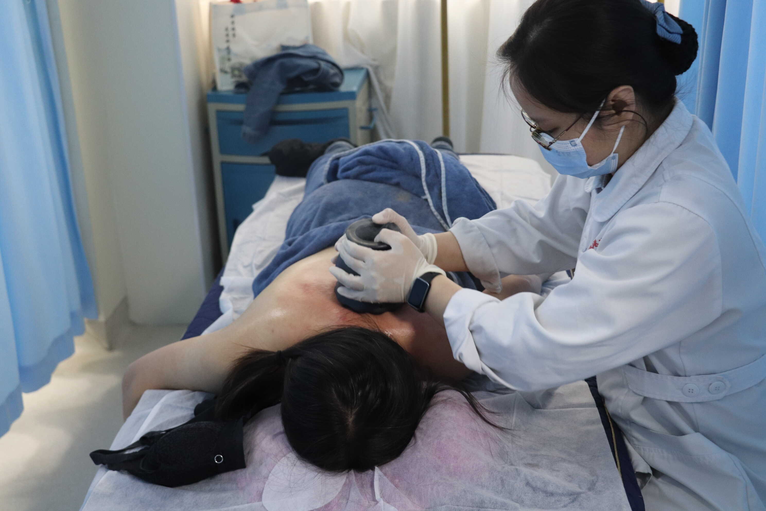 活动的最后设置了健康项目体验环节,体验现场设置康复和中医外治两大项目区,涵盖盆底磁、铜砭刮痧、拔罐和针灸等十余种特色项目,均由专业人员操作并做好全程健康保障。为所有教师提供红外热成像分析服务,完成中医体质辨识并出具个性化养生建议。体验过程中,医护人员同步讲解项目功效与日常养护要点,让教师们在放松身心的同时,更清晰地了解自身健康状况。