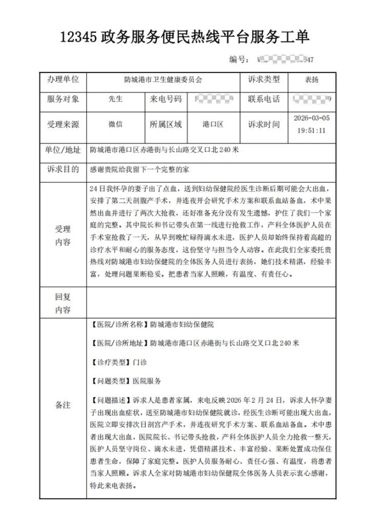 生死时速护生命,仁心仁术守团圆 | 防城港市妇幼保健院成功抢救高危产妇获家属深情赞誉